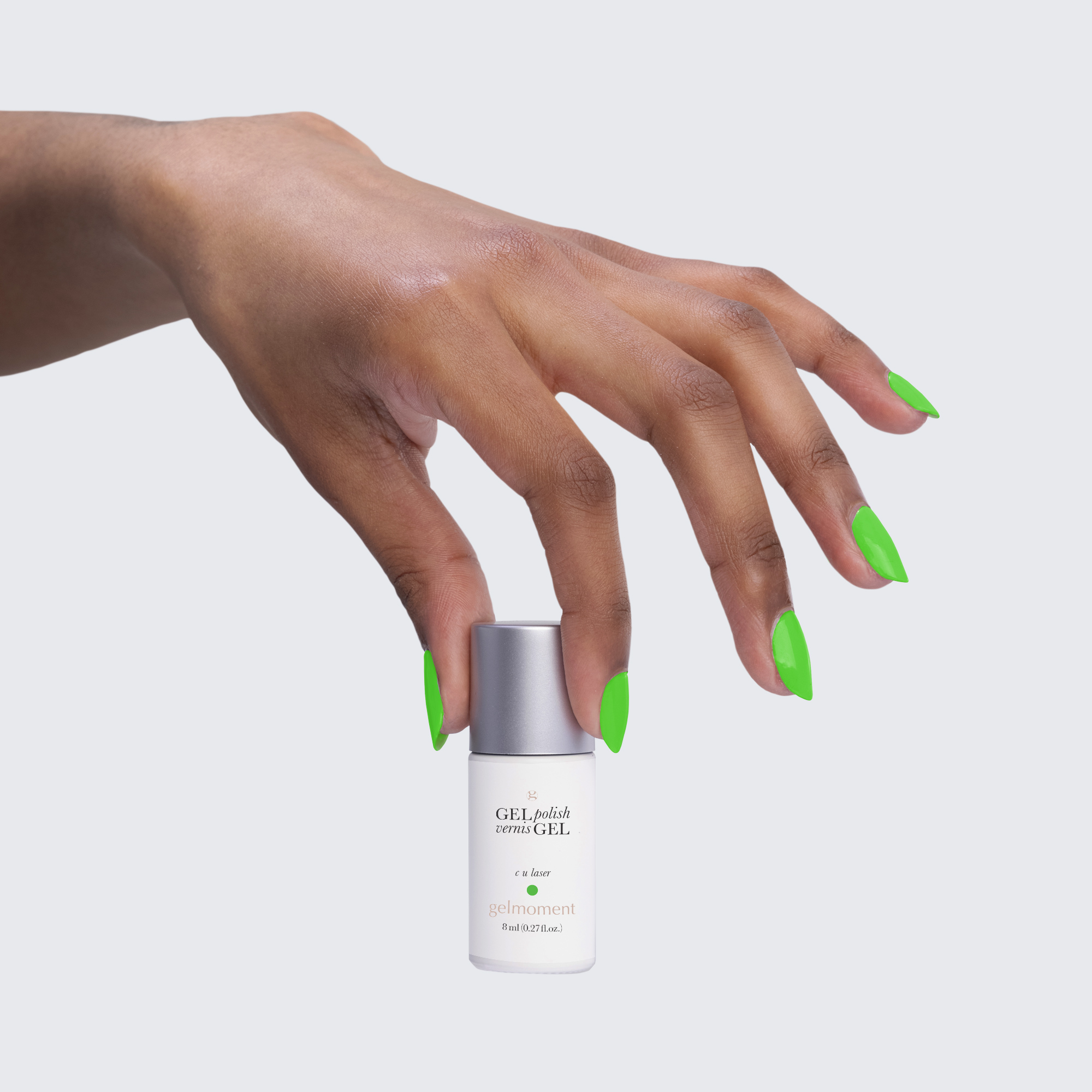 Neon green. Bright. Cool undertone. Medium opacity (slightly translucent).